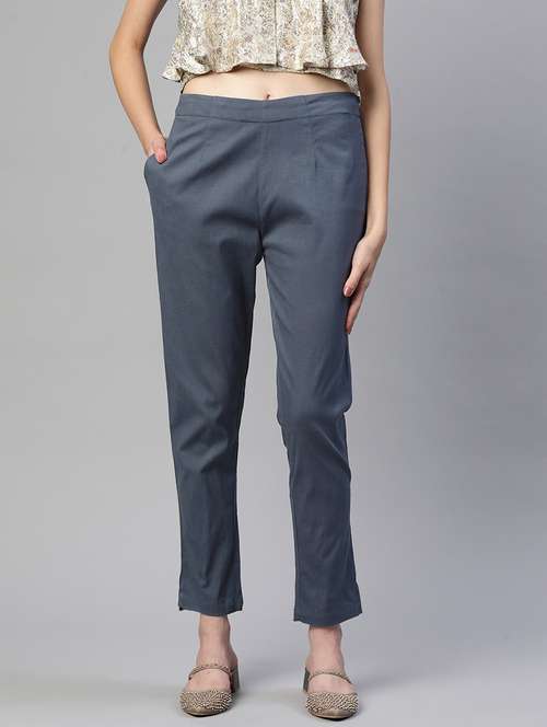 - » women solid pleated cigarette pants