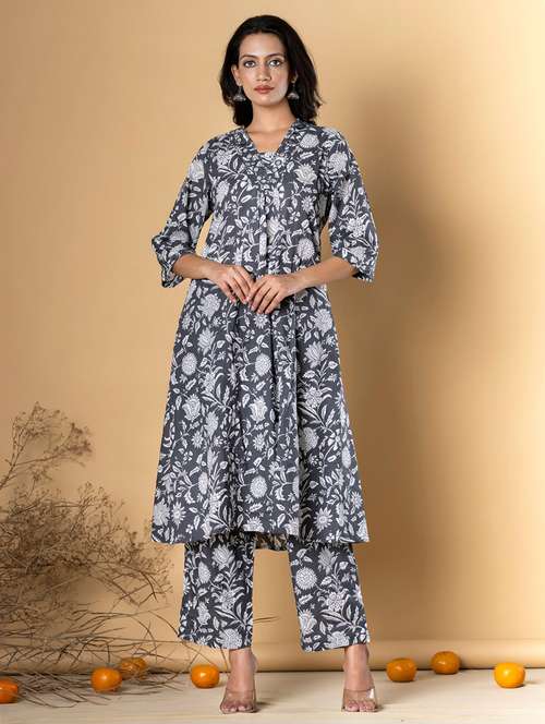 grey cotton kurta palazzo set