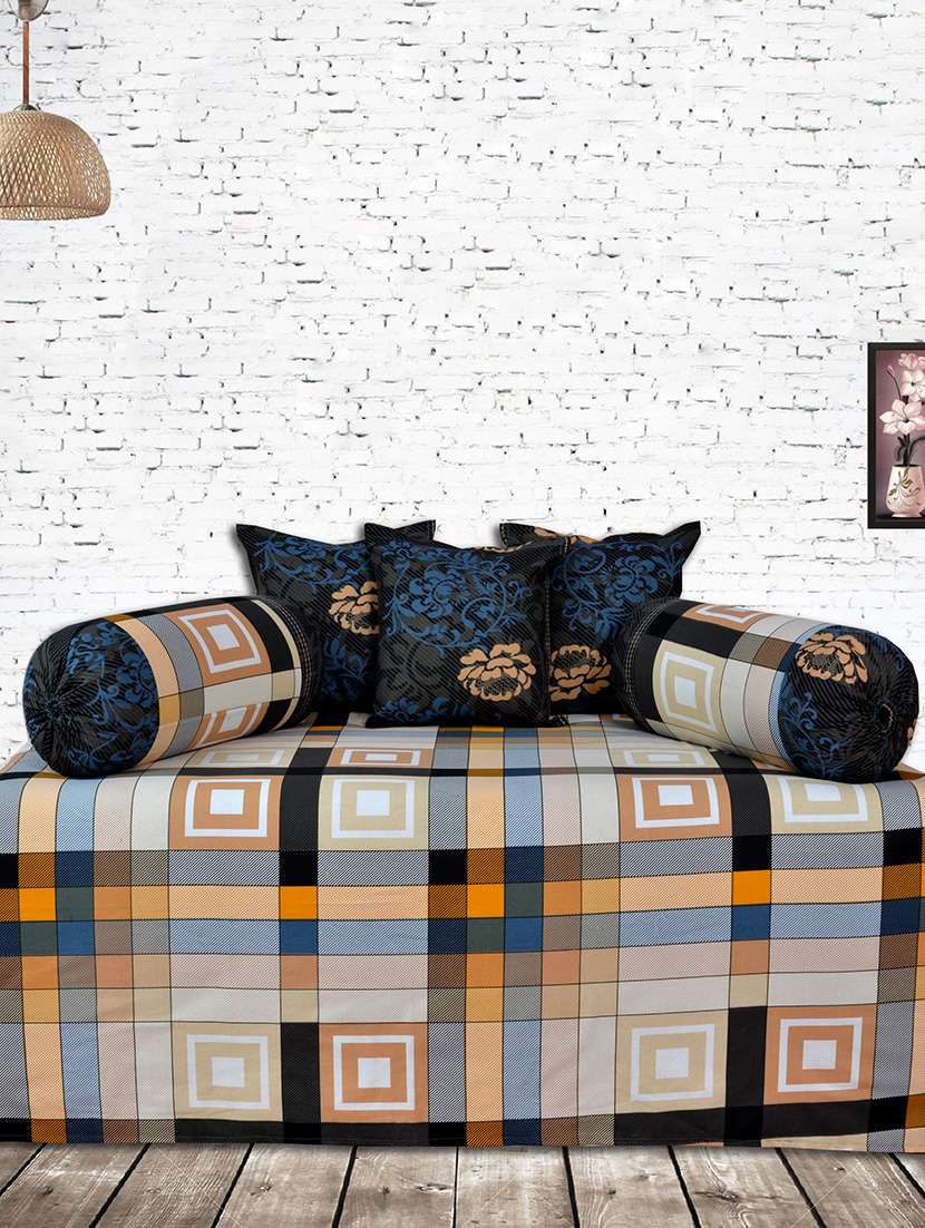1 Diwan Sheet, 2 Bolster covers, 3 Cushion covers
