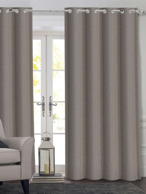 - » saral home grey decorative waffle design cotton yarn eyelet long door curtains - (set of 2, 4x9 feet)