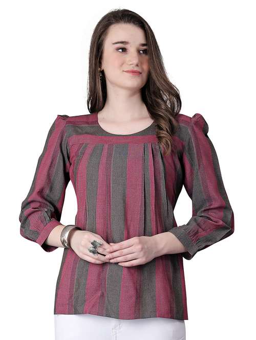 - Opt for this top made up of cotton material and get it in a varied neck design.