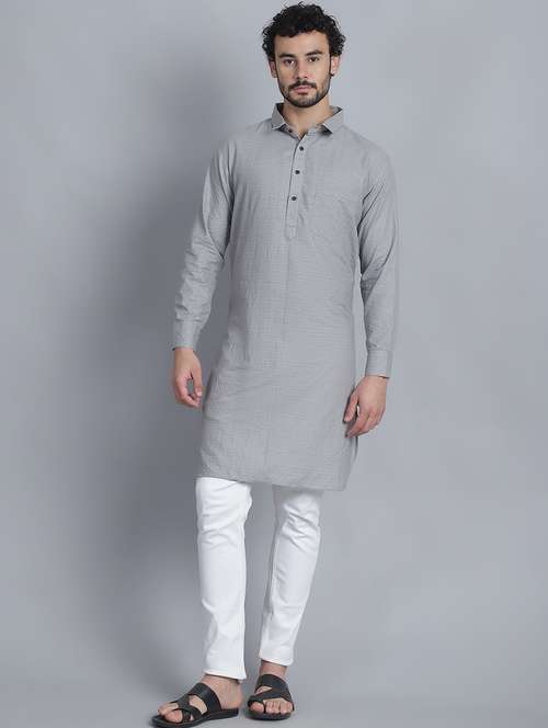 Sayesha Grey Dotted Lines Men's Semi Pathani Kurta