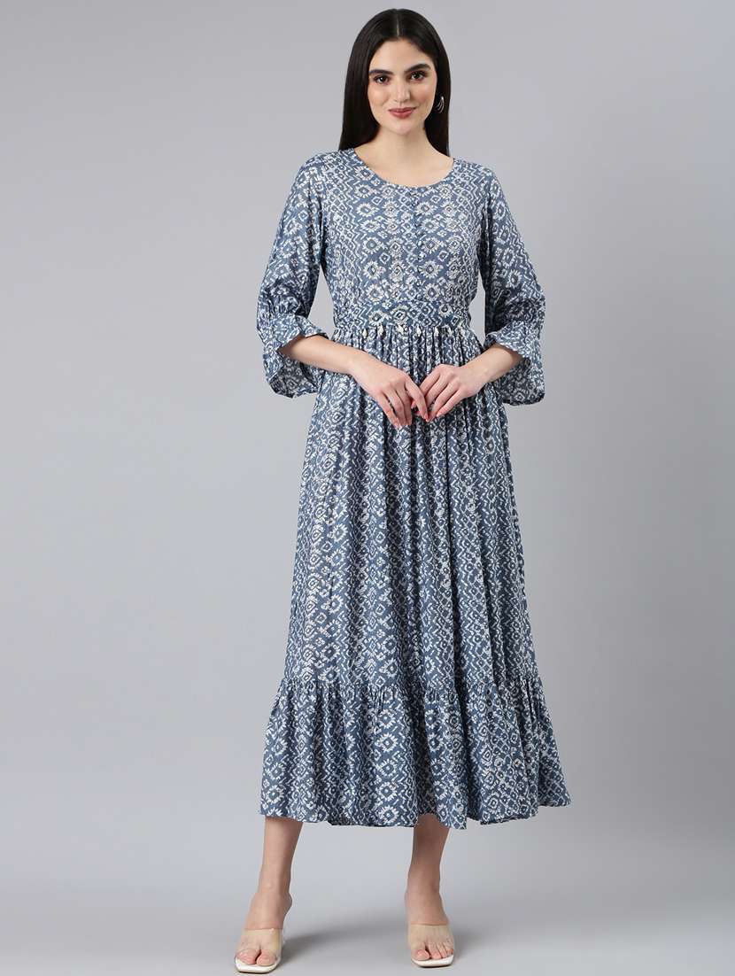 - » grey printed fit & flare ethnic dress