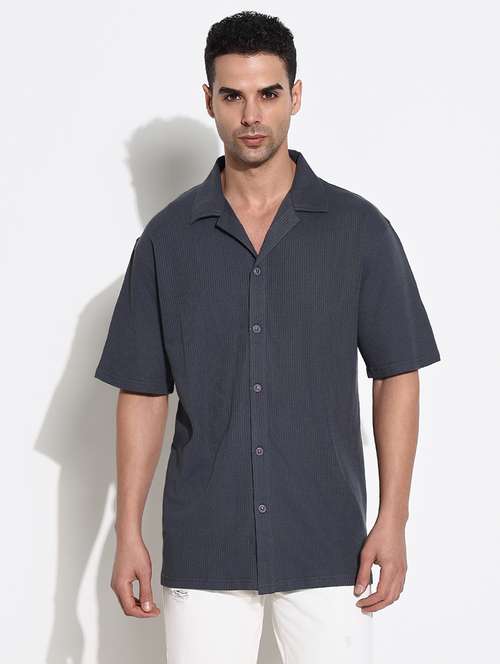 men textured short sleeves loose fit shirt - 21661415 - Very Small Image - 1