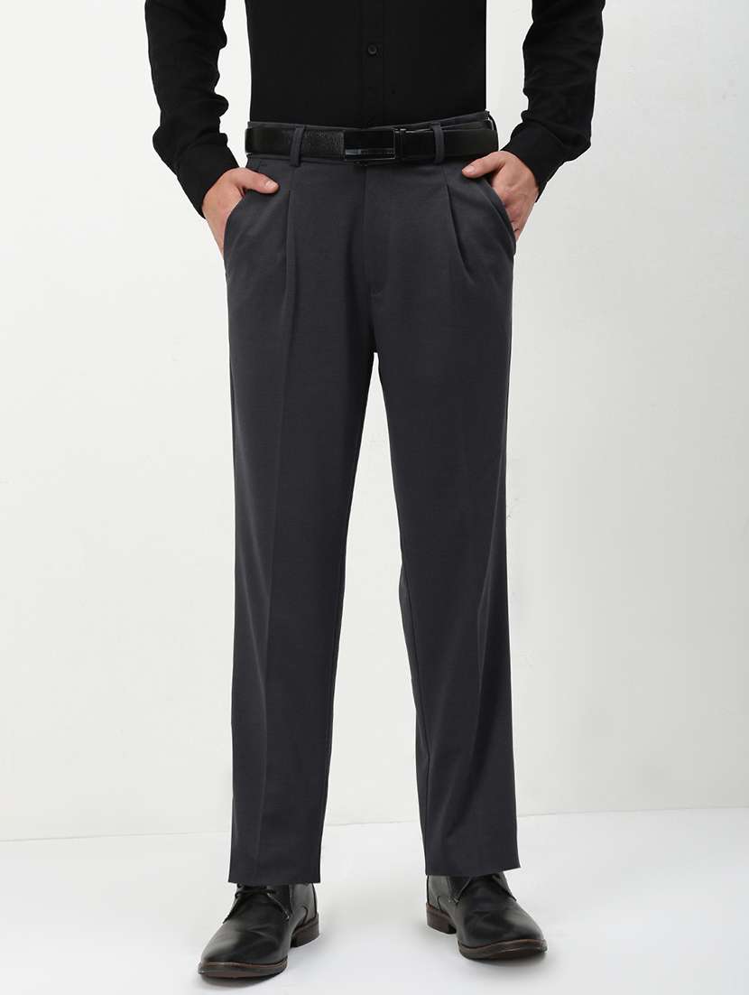 - » men mid rise solid pleated formal trouser