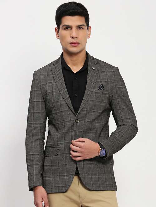 - » men long sleeves checkered single breasted casual blazer