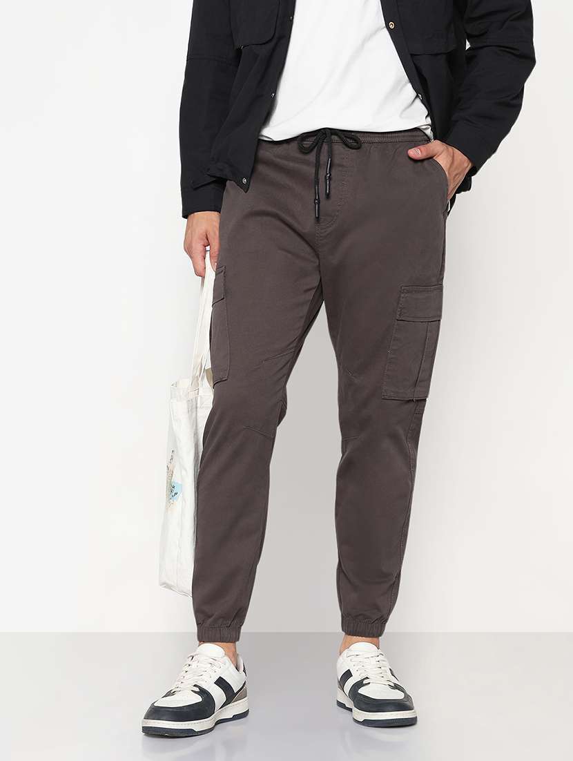 - » men grey solid low rise jogger cargo
