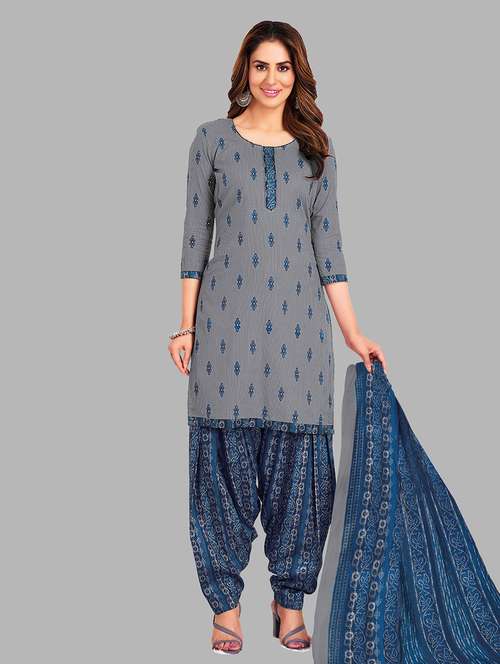 - Look ultra gorgeous in unstitched suits from SIMMU and grab these beautiful suits in grey colour.