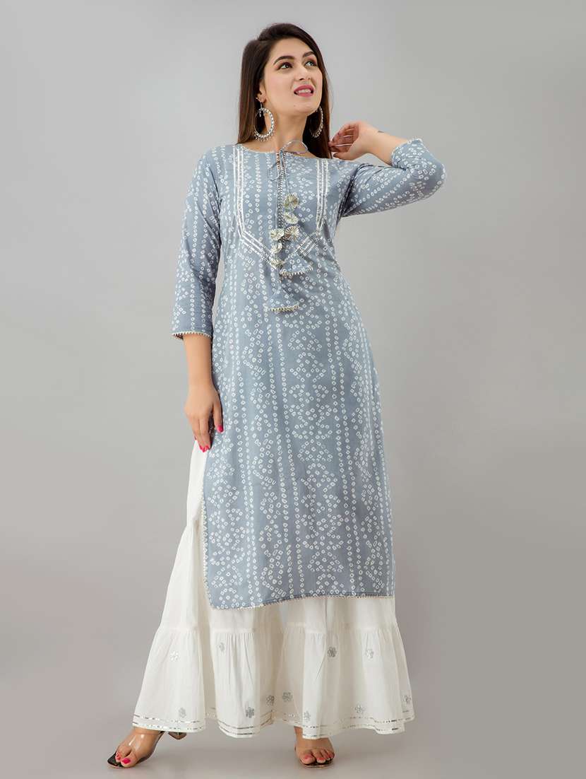 - » blue coloured bandhani kurta sharara set