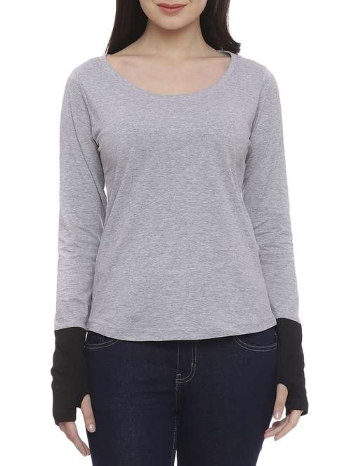 - » round neck thumb hole sleeved tee