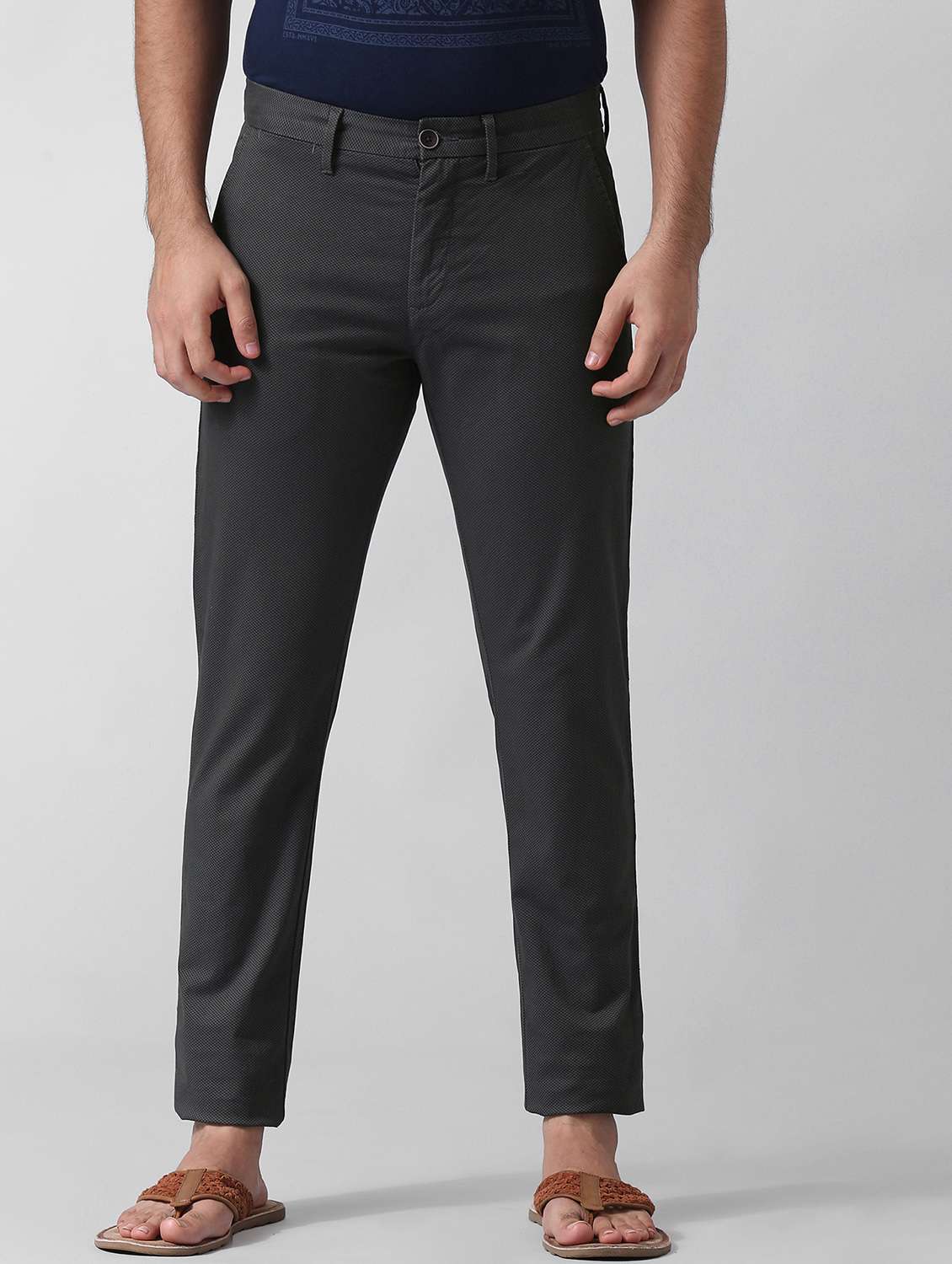- » grey textured flat front casual trouser
