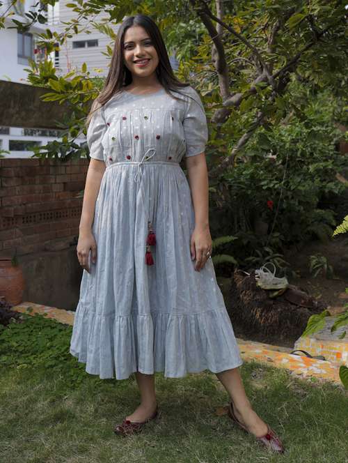printed tiered flare ethnic dress