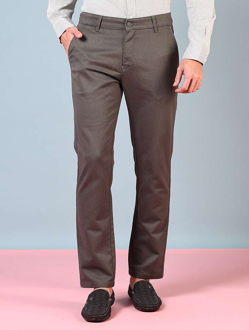 men solid mid rise casual chinos