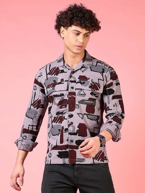 - » men printed long sleeve slim fit casual shirt