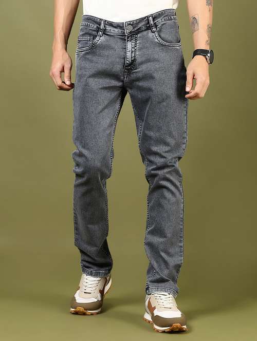 - » men plain mid rise full length denim jeans
