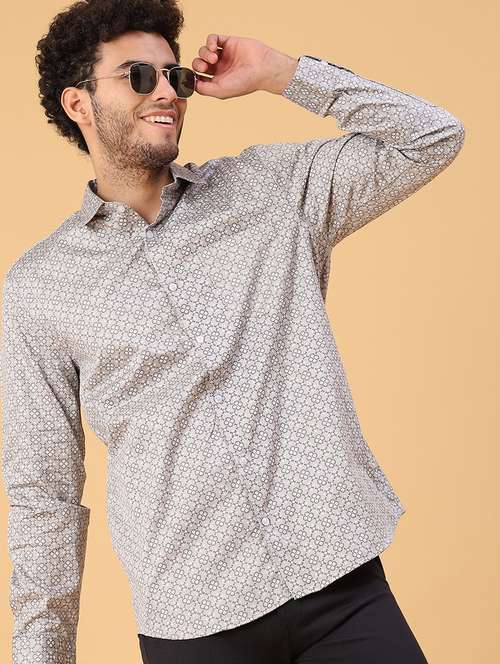 - » men printed long sleeve regular fit casual shirt