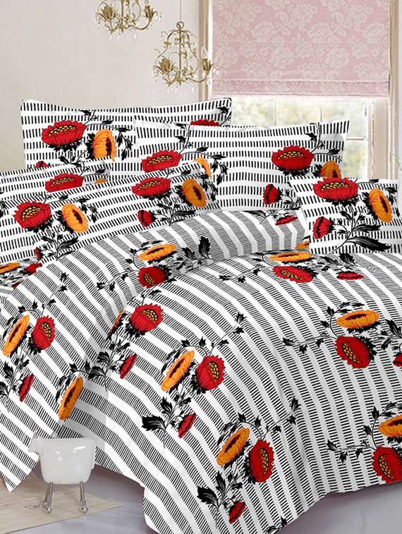 - » valtellina floral grey cotton double bed sheet with 2 pillow cover - tc-250