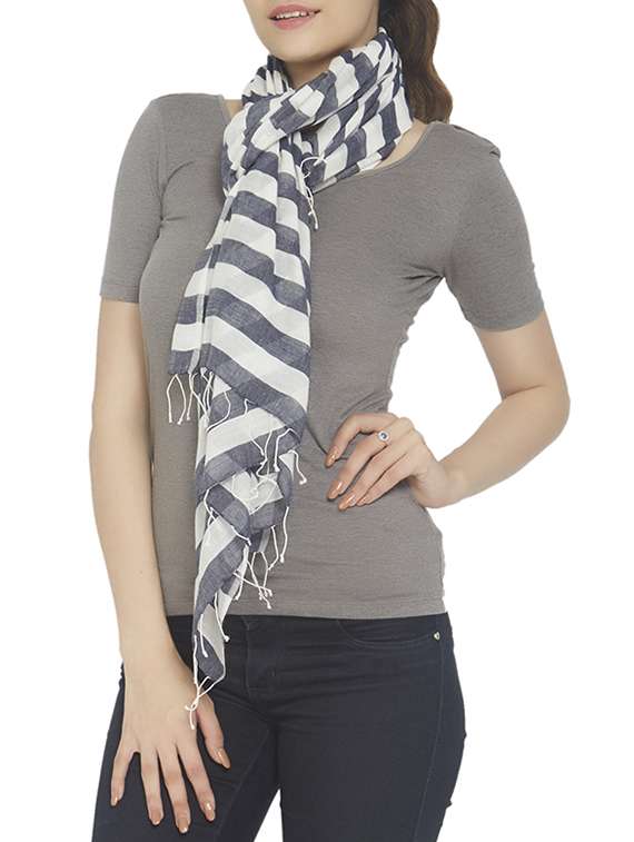 Vozaf Women's Stripes Stoles 100% Cotton Size 70X180 Cms Colour Grey And White