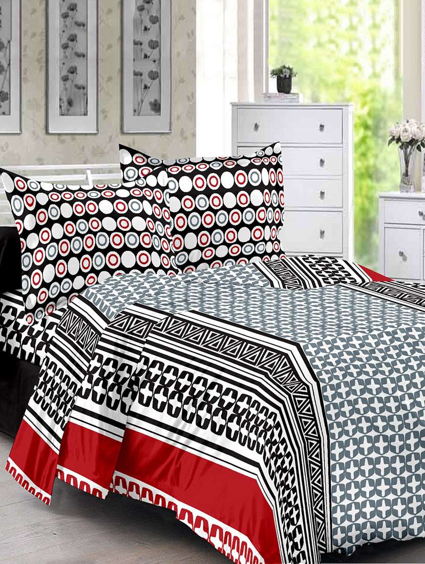 - » welhouse cotton traditional grey double bed sheet with 2 contrast pillow covers