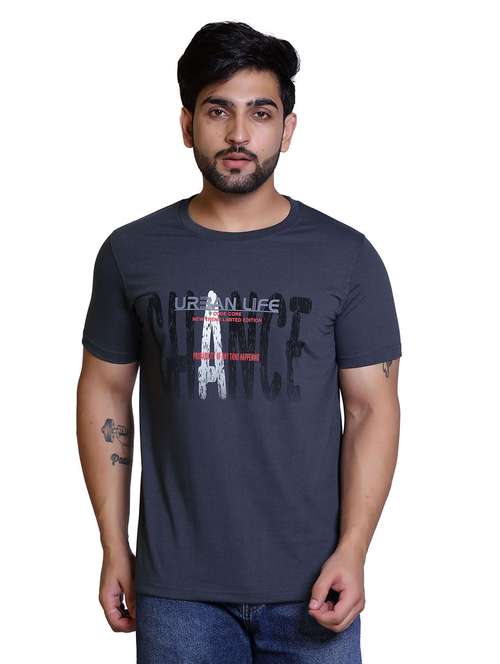 - » round neck printed regular t-shirt