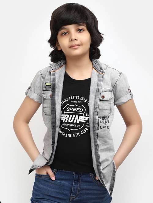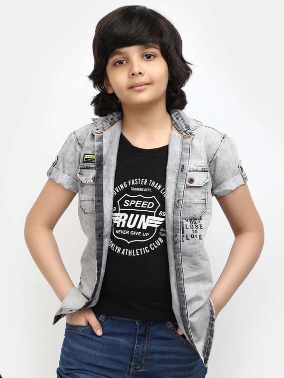 boys grey solid shirt