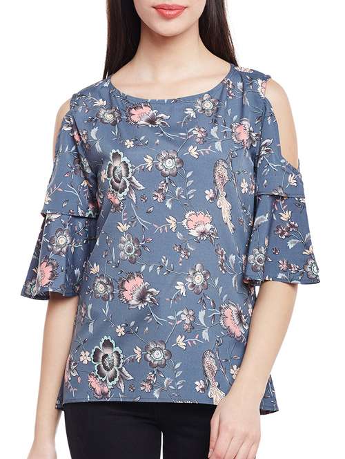 blue printed crepe tunic
