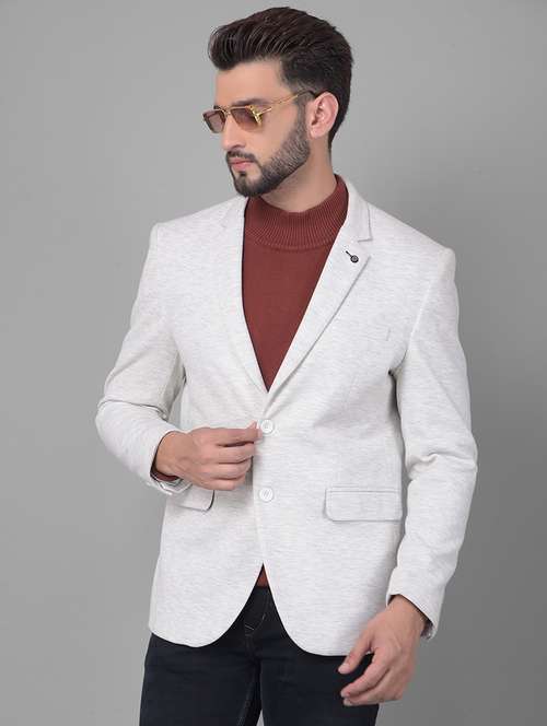 - » men grey melange polyester single breasted casual blazer