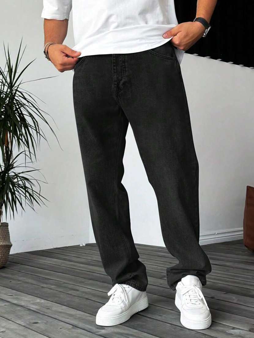 men solid mid rise baggy jean