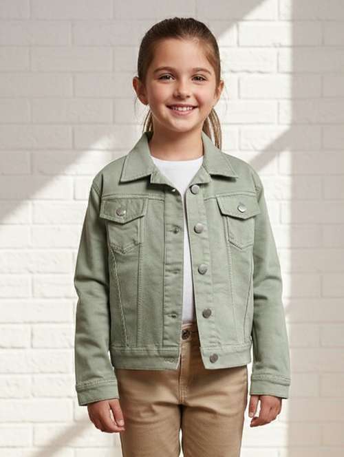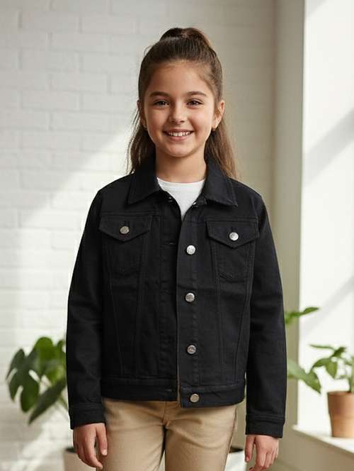 - » girls collared long sleeve denim jacket