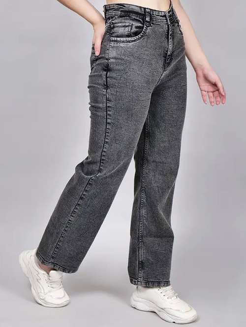 - Choose from the trendy assortment of straight fit jeans in a variety of grey colors and timeless designs to complete your clothing essential list.