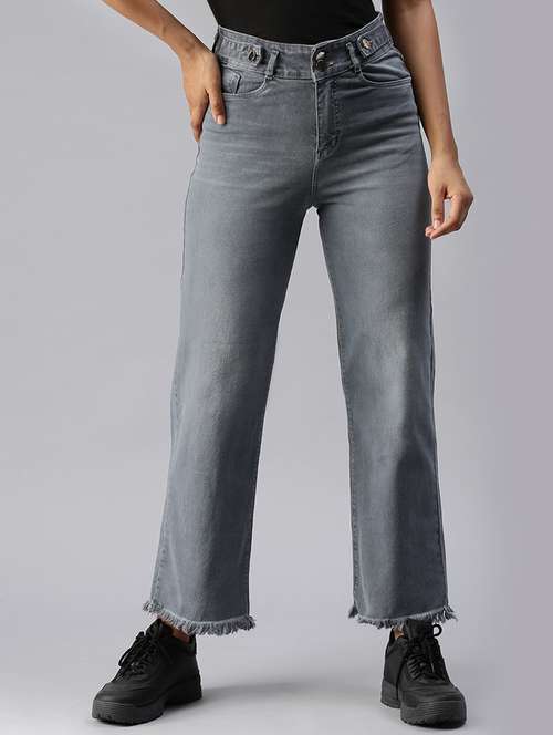 - Choose from the trendy assortment of straight fit jeans in a variety of grey colors and timeless designs to complete your clothing essential list.