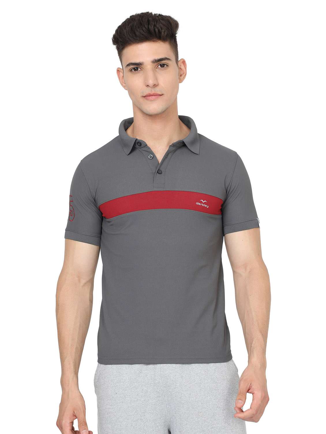 men color block grey polyester polo t-shirt