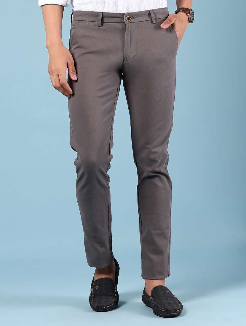 - » men solid md rise flat front casual chinos