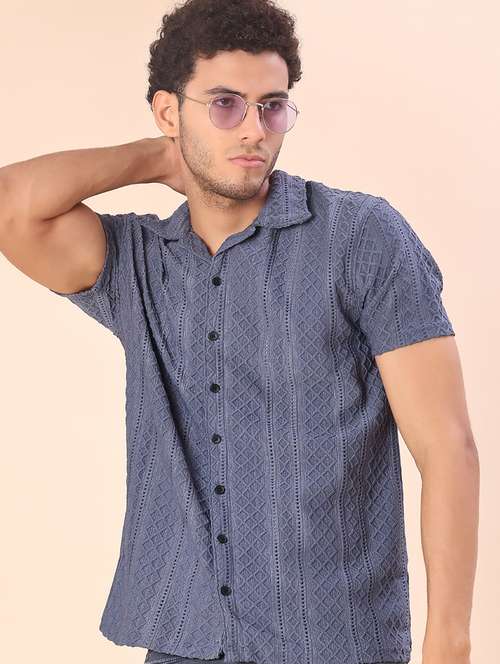 - » men self design short sleeve regular fit casual shirt