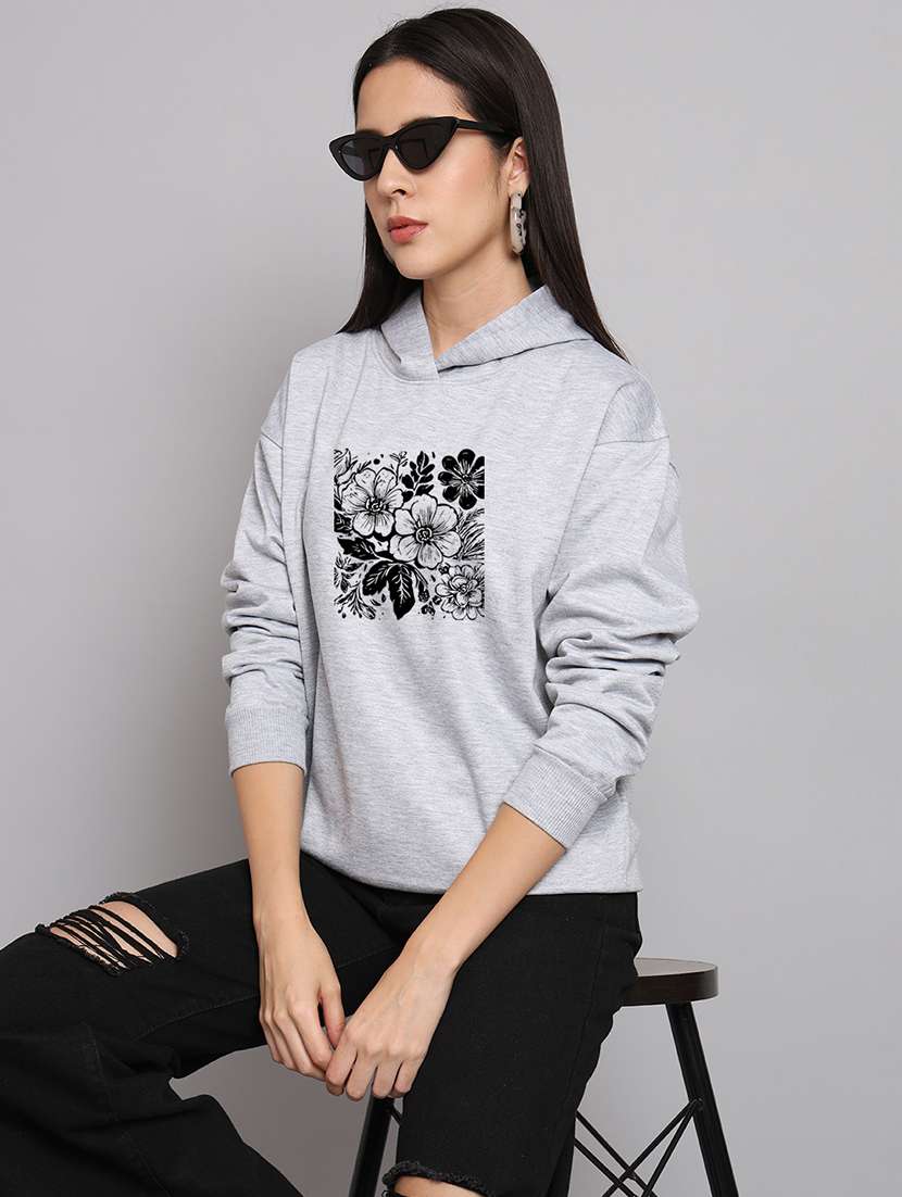 - » women printed long sleeve hooded sweatshirt