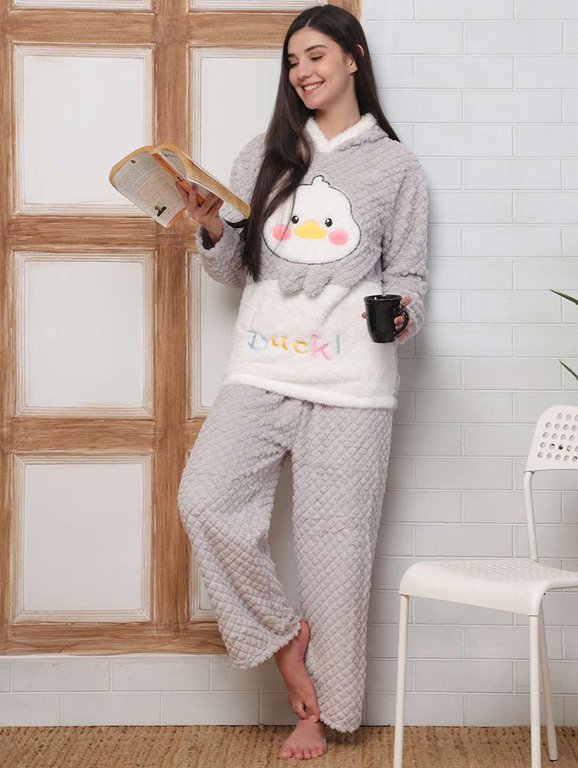 - » women self designed hooded nightwear pyjama set