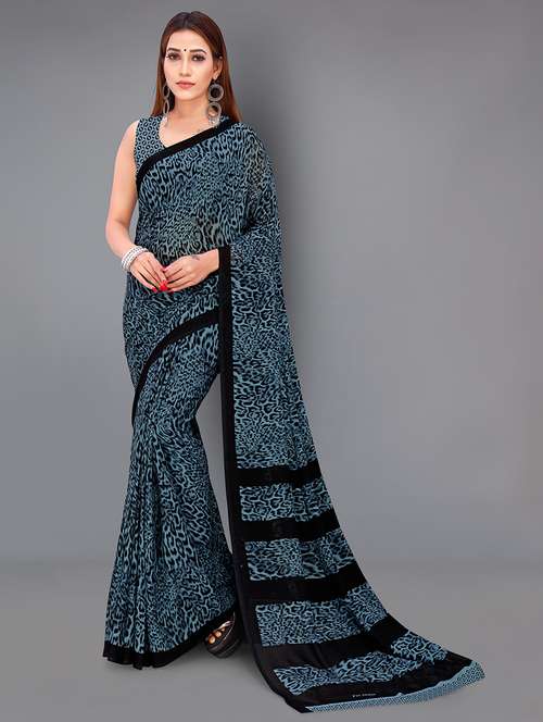 - » women teal animal printed saree with blouse