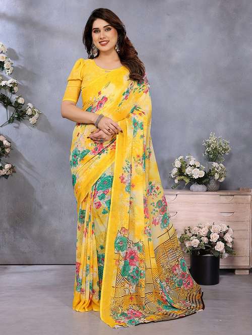 Add a touch of elegance to your daily wardrobe with this Lightweight Floral Printed Georgette Saree. Made from soft and breathable georgette fabric, this saree drapes beautifully and ensures day-long comfort. The delicate floral prints lend a fresh and feminine appeal, making it ideal for everyday wear, casual outings, or office use. It comes with a matching unstitched blouse piece to complete your effortlessly graceful look.