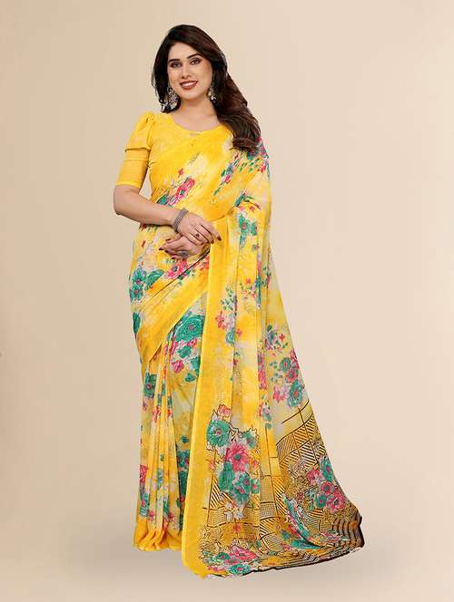 Add a touch of elegance to your daily wardrobe with this Lightweight Floral Printed Georgette Saree. Made from soft and breathable georgette fabric, this saree drapes beautifully and ensures day-long comfort. The delicate floral prints lend a fresh and feminine appeal, making it ideal for everyday wear, casual outings, or office use. It comes with a matching unstitched blouse piece to complete your effortlessly graceful look.
