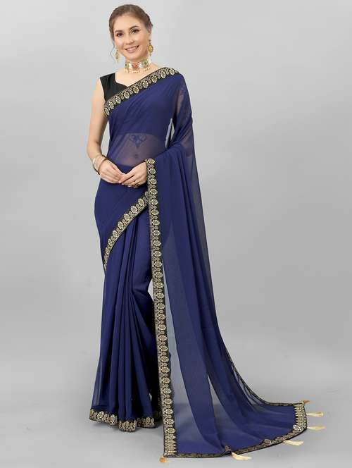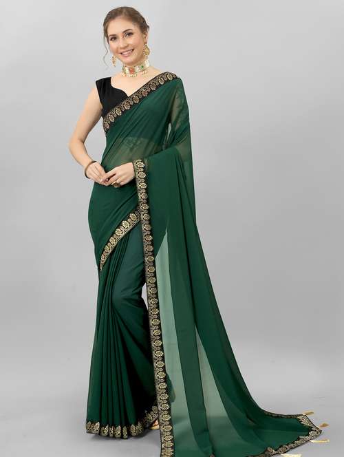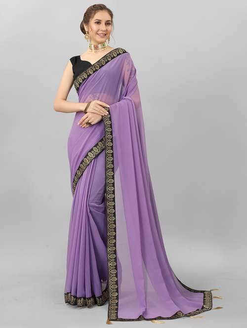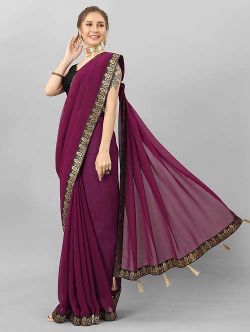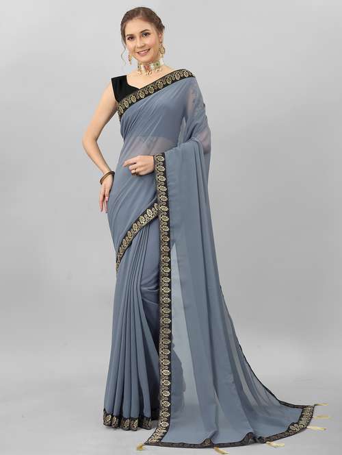 GEORGETTE PLAIN SAREE WITH PLAIN BLOUSE