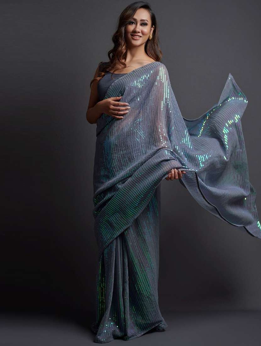 - » solid sequins woven saree with blouse