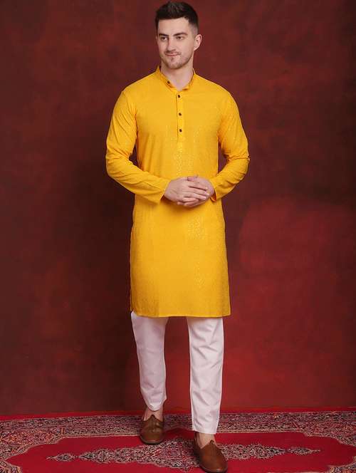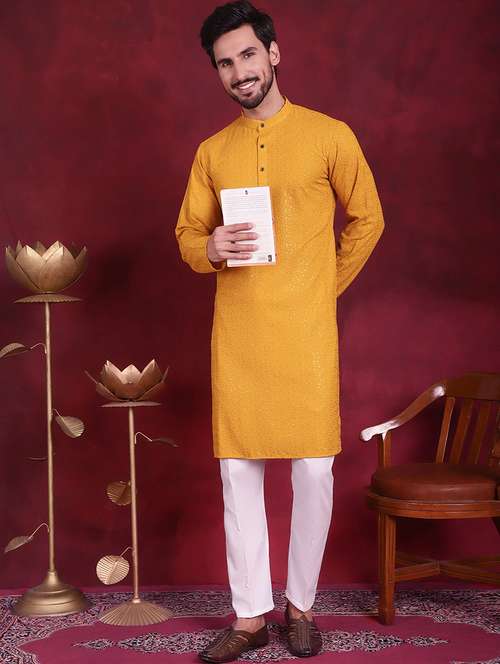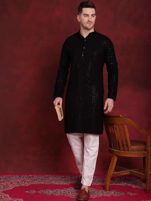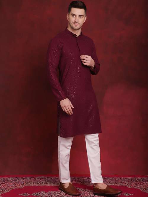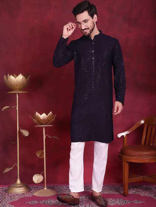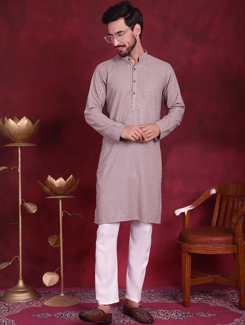 Grey Chikankari Embroidered Viscose Rayon Kurta for Men. Perfect for traditional days, festivals, weddings, and regular wear. It carries full sleeves, side slits, mandarin collar, and side buttons placket.