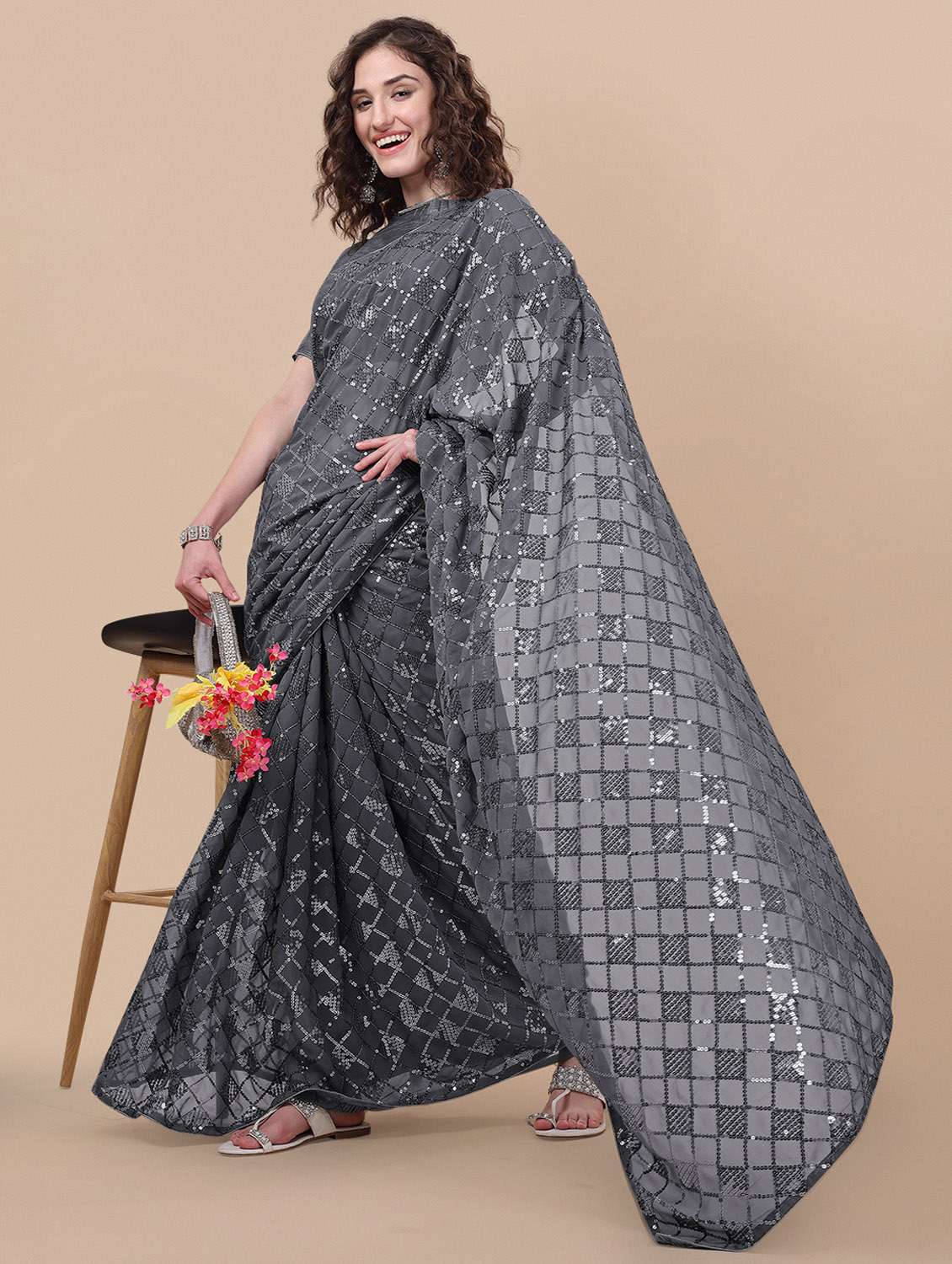 Explore The Collection Of Beautifully Designed Embroidered Sequence Work Saree From Krisio On Limeroad. Each Piece Is Elegantly Crafted And Will Surely Add To Your Wardrobe. Pair This Piece With Heels Or Flats For A Graceful Look. Our Product Motive to make one more step with todays fashion. The Saree is equally stylish, and versatile.