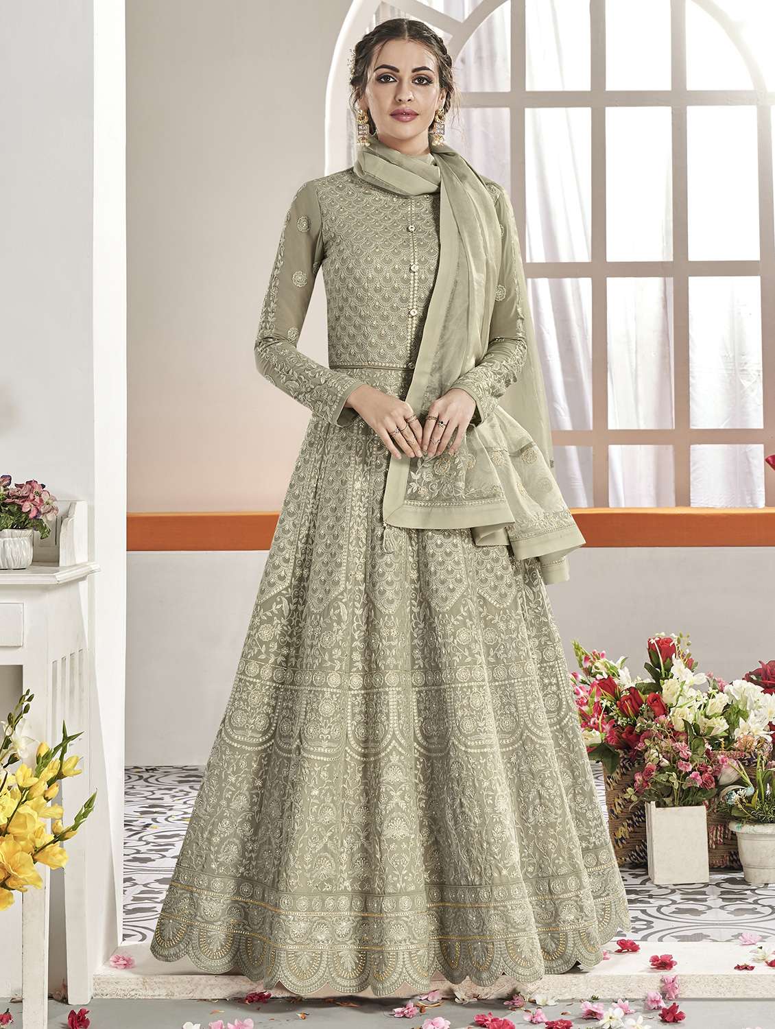 - » embroidered semi-stitched suit