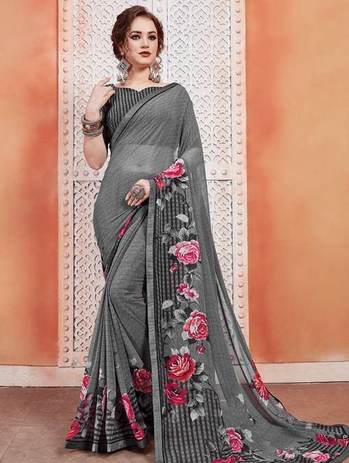 floral printed saree with blouse
