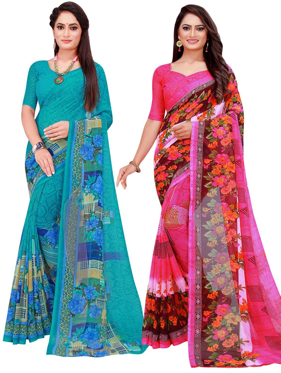 - » pack of 2 printed casual wear sarees with blouse