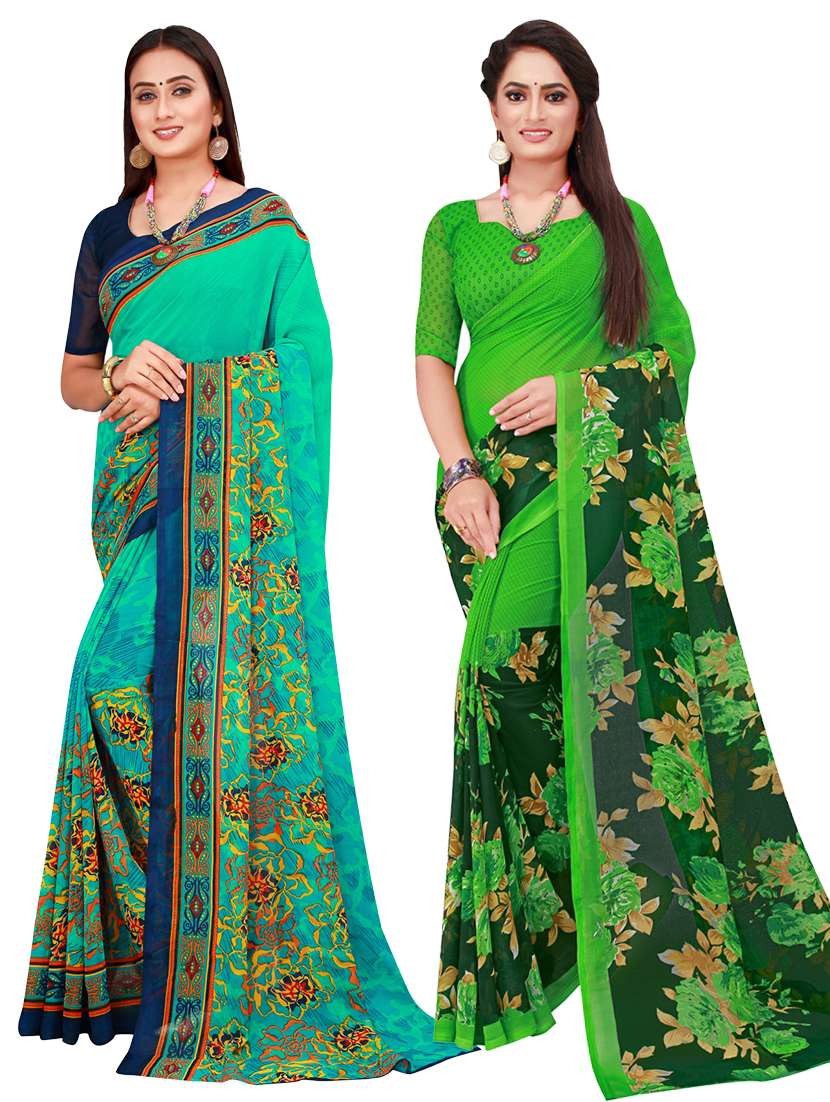 pack of 2 printed sarees with blouse