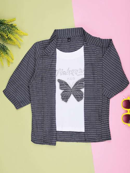 girls striped three quarter sleeve top