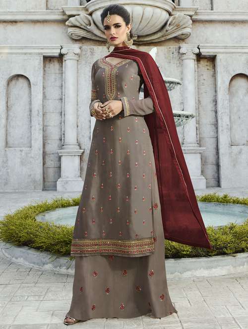 embroidered palazzo semi-stitched suit - 16252928 - Very Small Image - 1