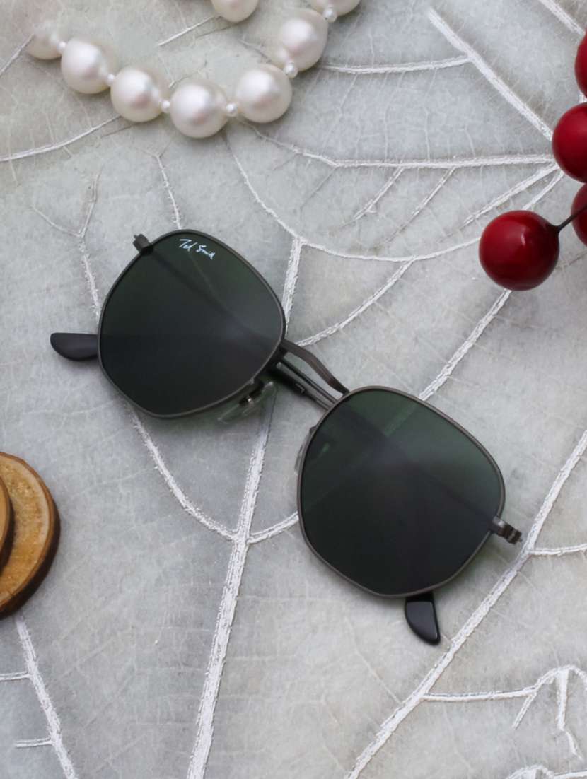 Ted Smith Unisex Hexagnal Sunglasses I 100% Uv Protection I Grey Colour Lens